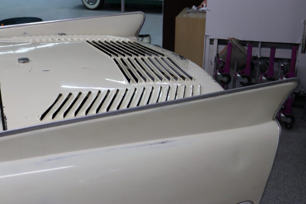 “I want to find more things over the course of the winter. I have reproduction hub caps for it. I would like to find some original, older but usable, nice, not rusted out hub caps to put on it to match the original patina of the car,” he said. He’s also acquired replacement headlight rims.