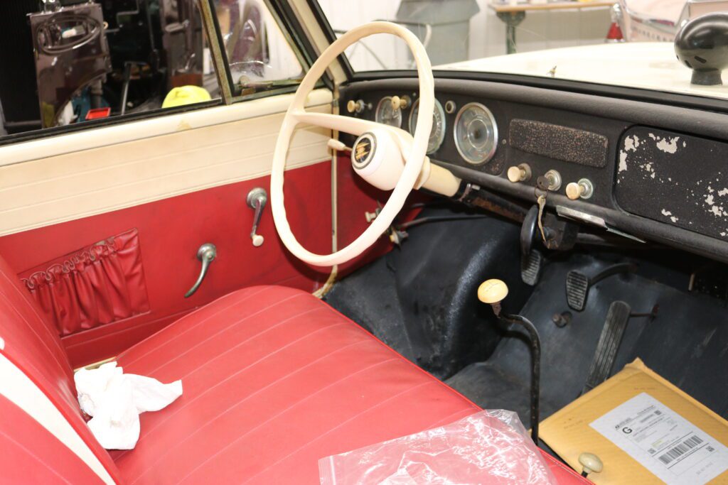 “The paint’s shining up. We got the fuel system all cleaned out. The fuel tank’s in the front, engine’s in the back. Had to make sure that the fuel filter, the fuel tank was clean so that it would get a reliable supply of fuel. The brakes were shot. Had to redo the brakes, so that’s been done. We’re still working on the paint. The next thing I’m going to do is – I have it on order – is I have a brand new convertible top for it.