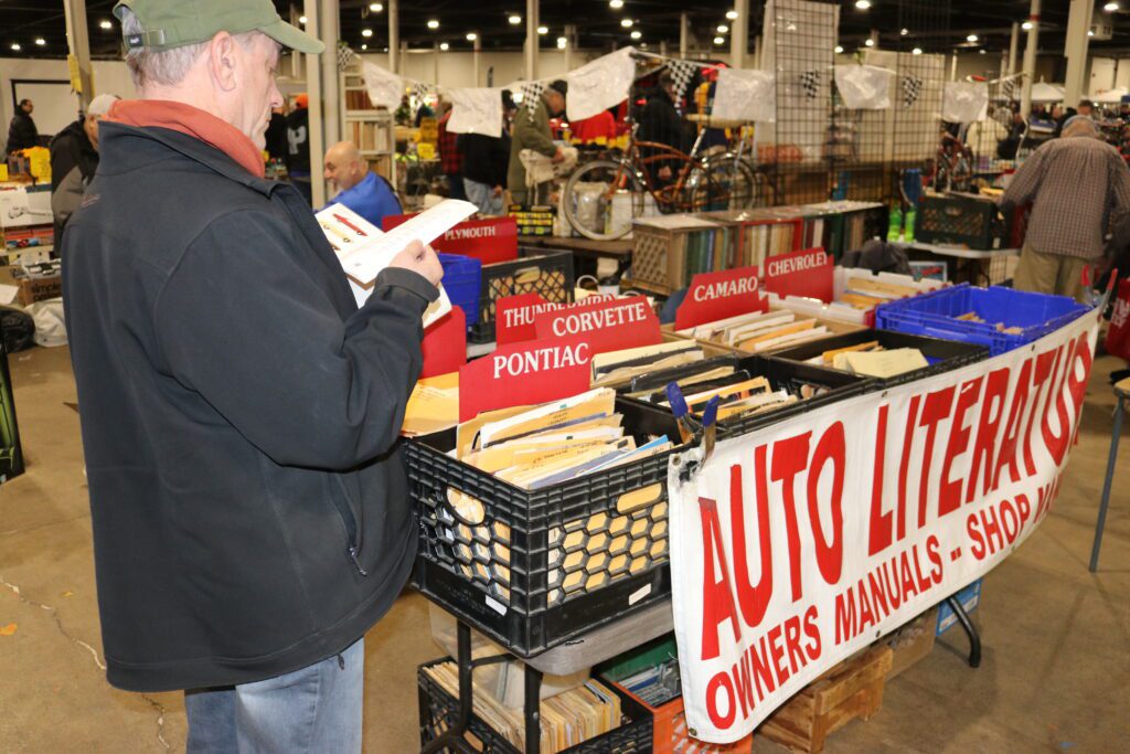 AGAWAM, MA – Perhaps it was the brand signage. Or maybe it was the magazines and the auto literature. Or it could have been something else entirely. From models cars to motor parts and lug nuts to grilles, opening day of the two-day Auto Parts Swap ‘n Sell at the Eastern States Exposition had car enthusiasts out ignoring the morning’s snowflakes to shop on the show floor.